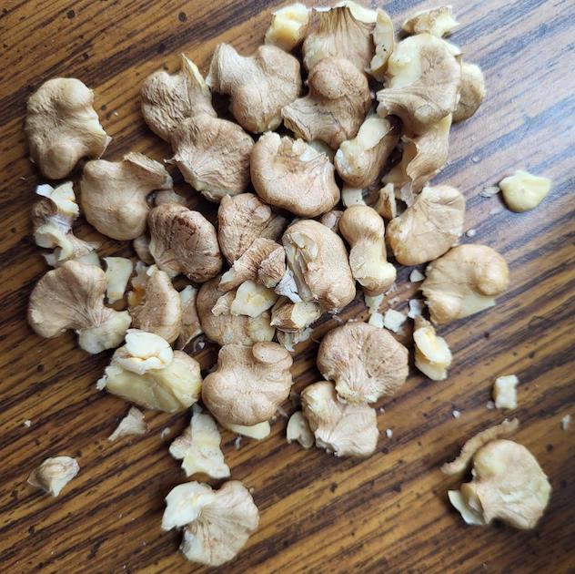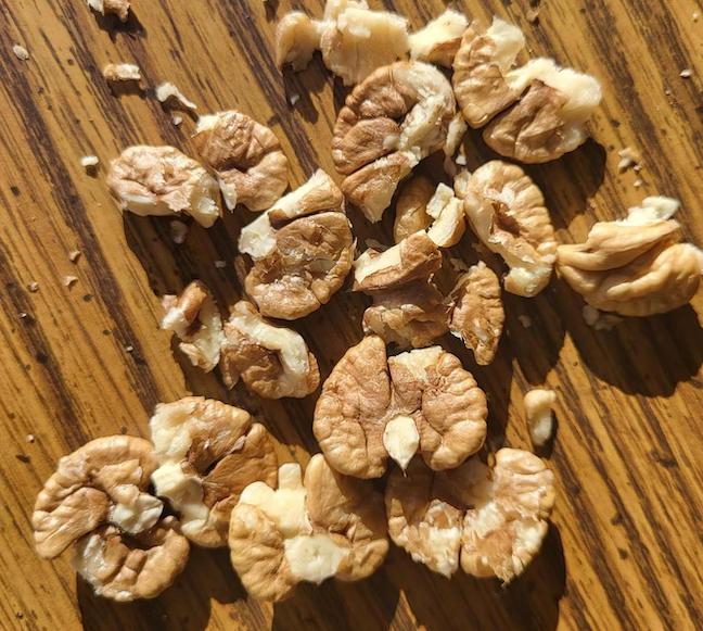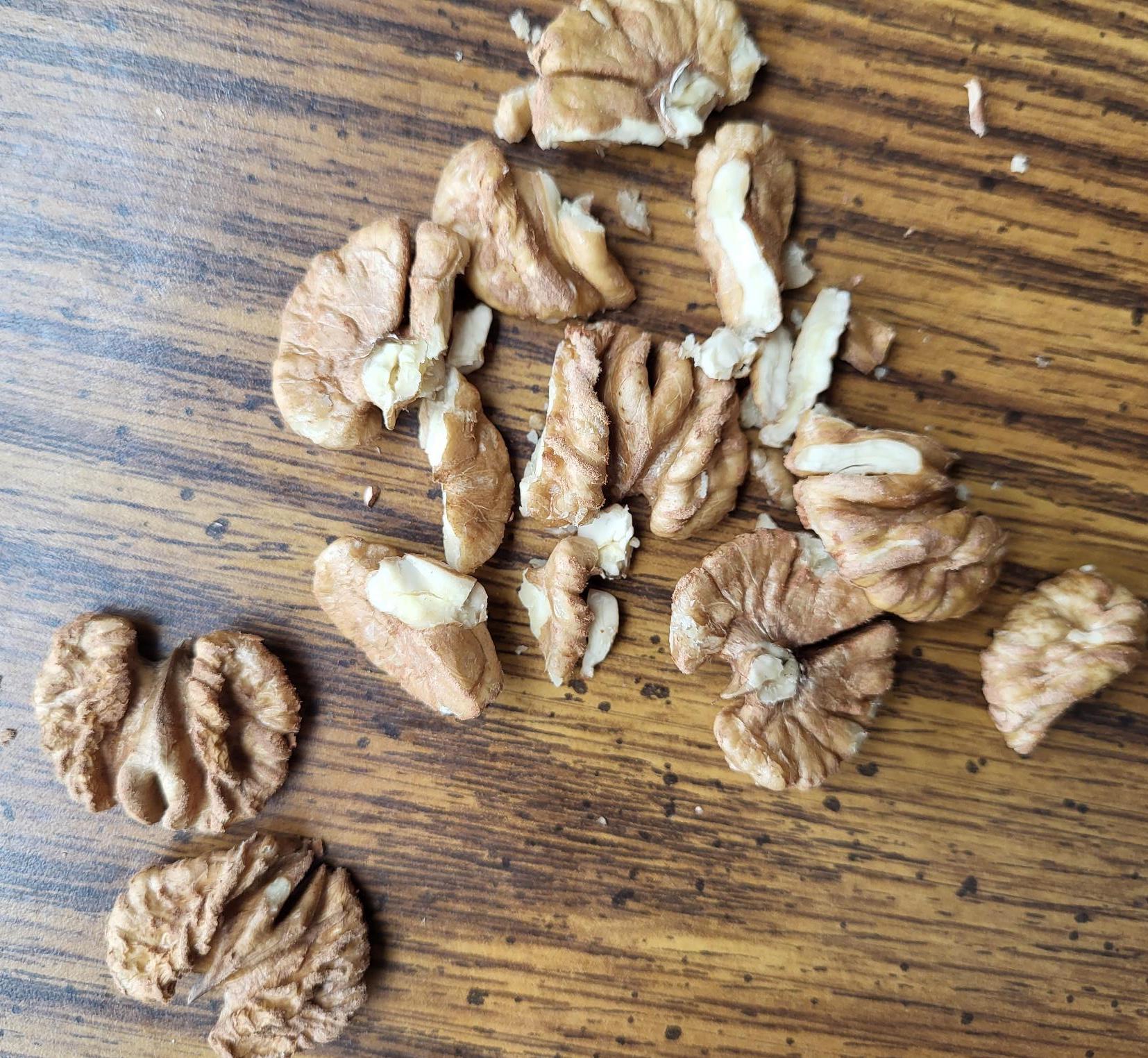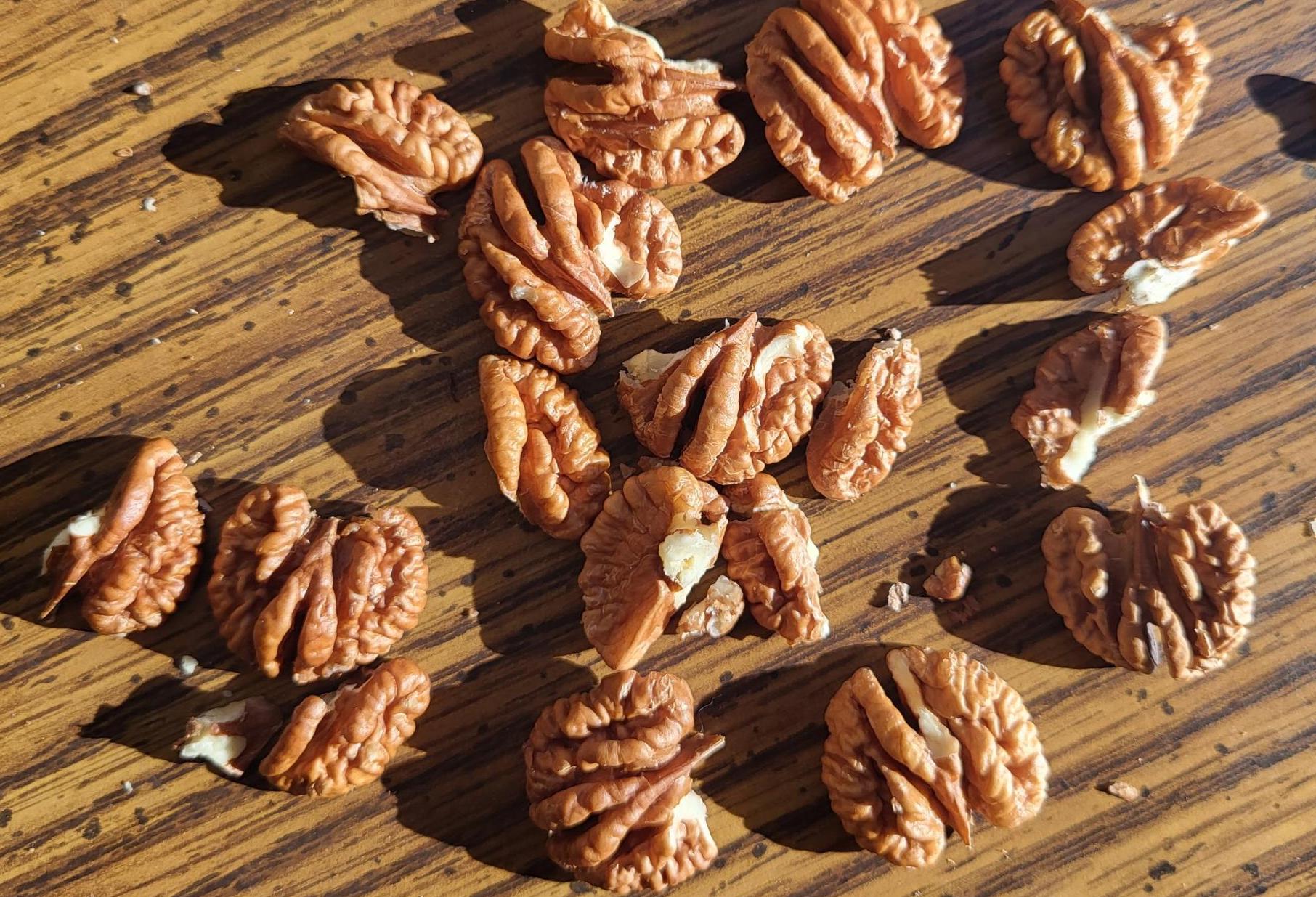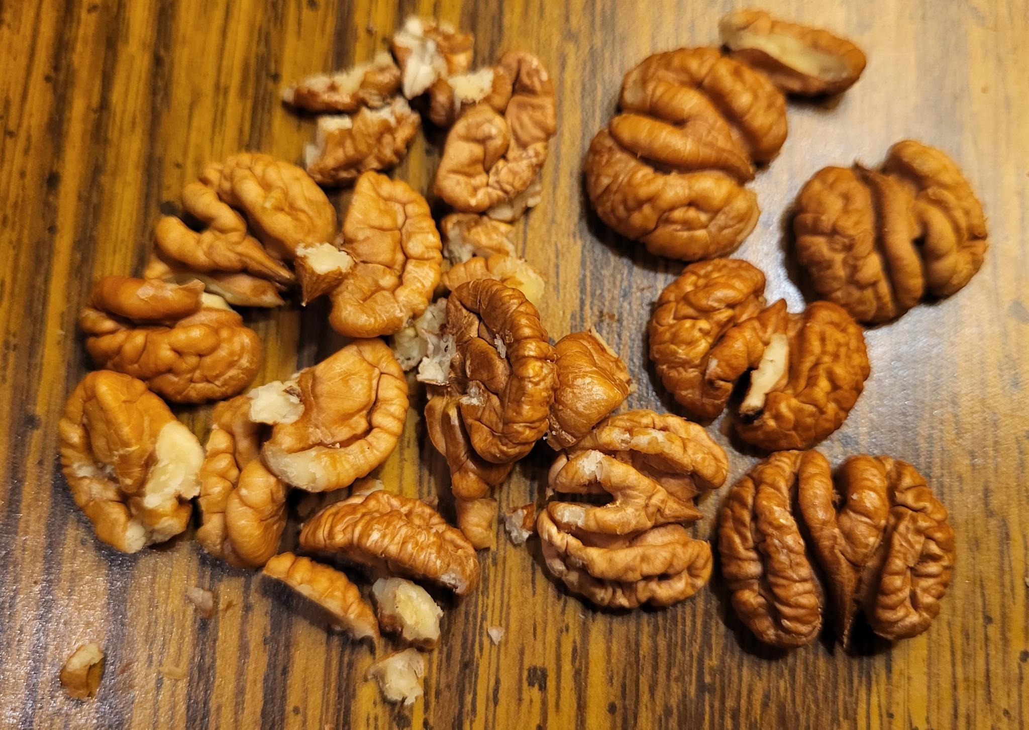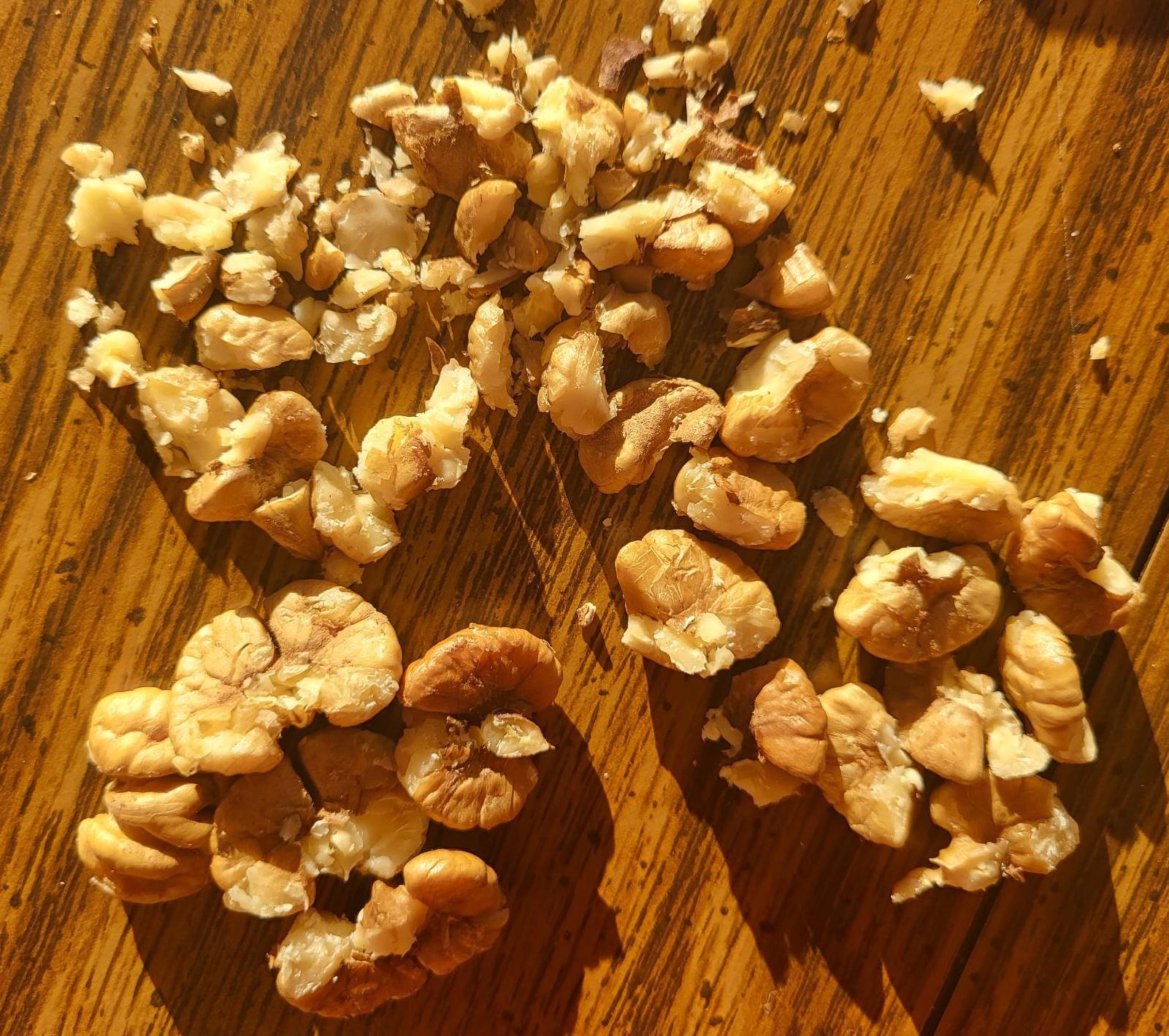 - "Grainger" - Shag. 45% kernel, 3.3-3.8g kernel. 50% halves, 40% quarters, 10% pieces. 70% easy extraction, 95% finger extraction, 5% stuck. Cracks well both directions but too pokey to crack side to side. Medium pellicle adhesion. Alternate bearing, moderate producer, Weevil resistant, Excellent shag flavor. Not recommended in my area due to poor ripening in the north and there are better selections anyways. TN native, Terre Haute, IN tested.