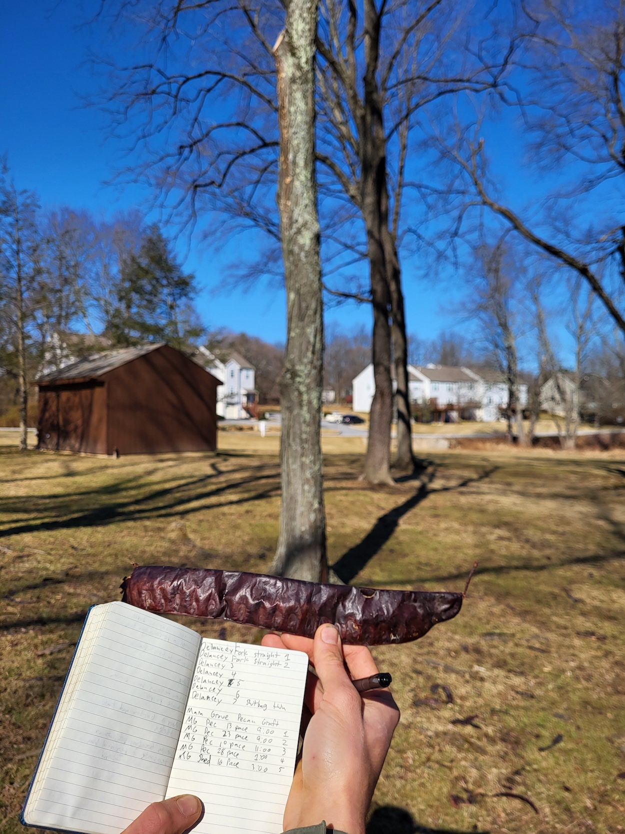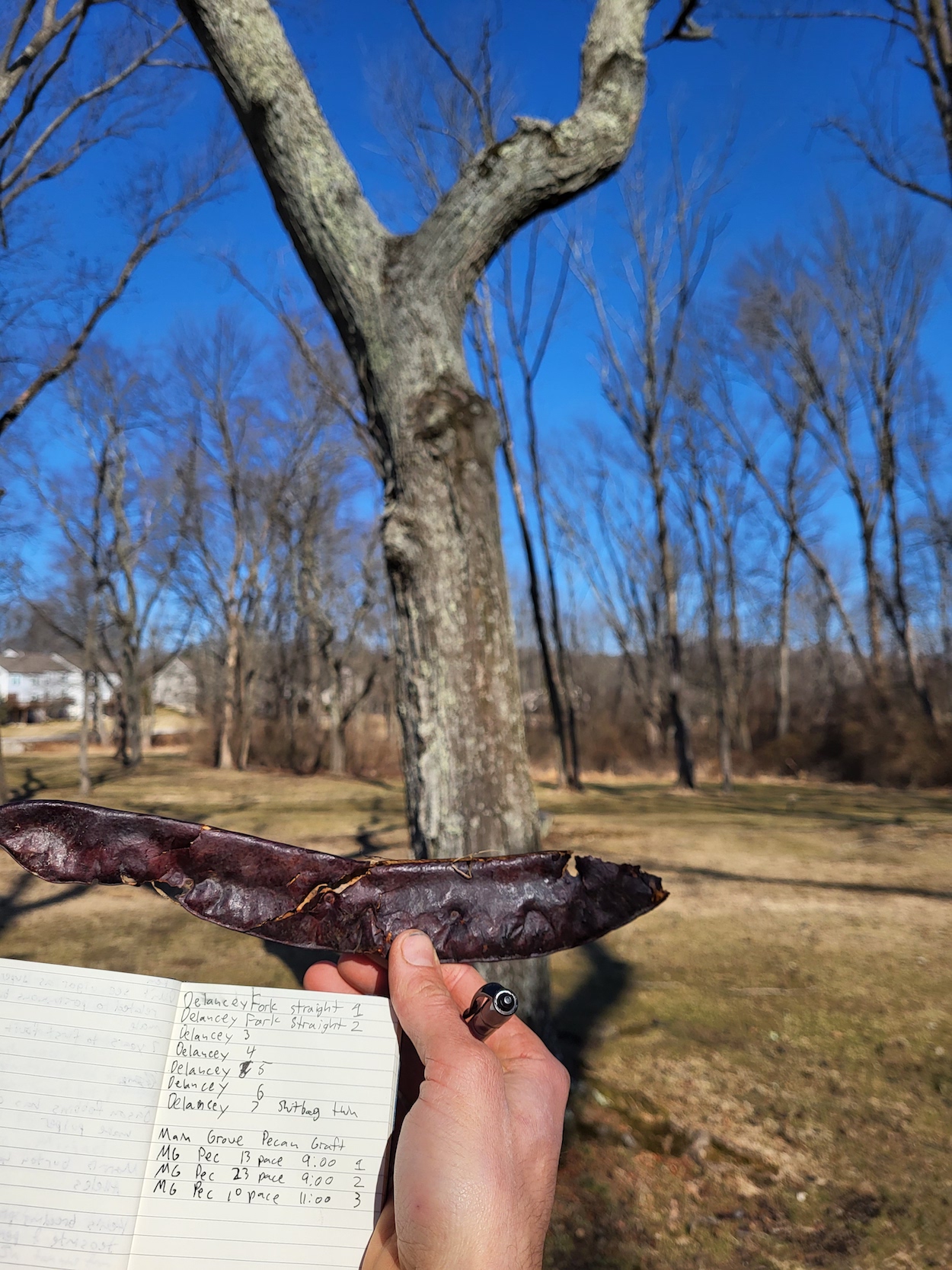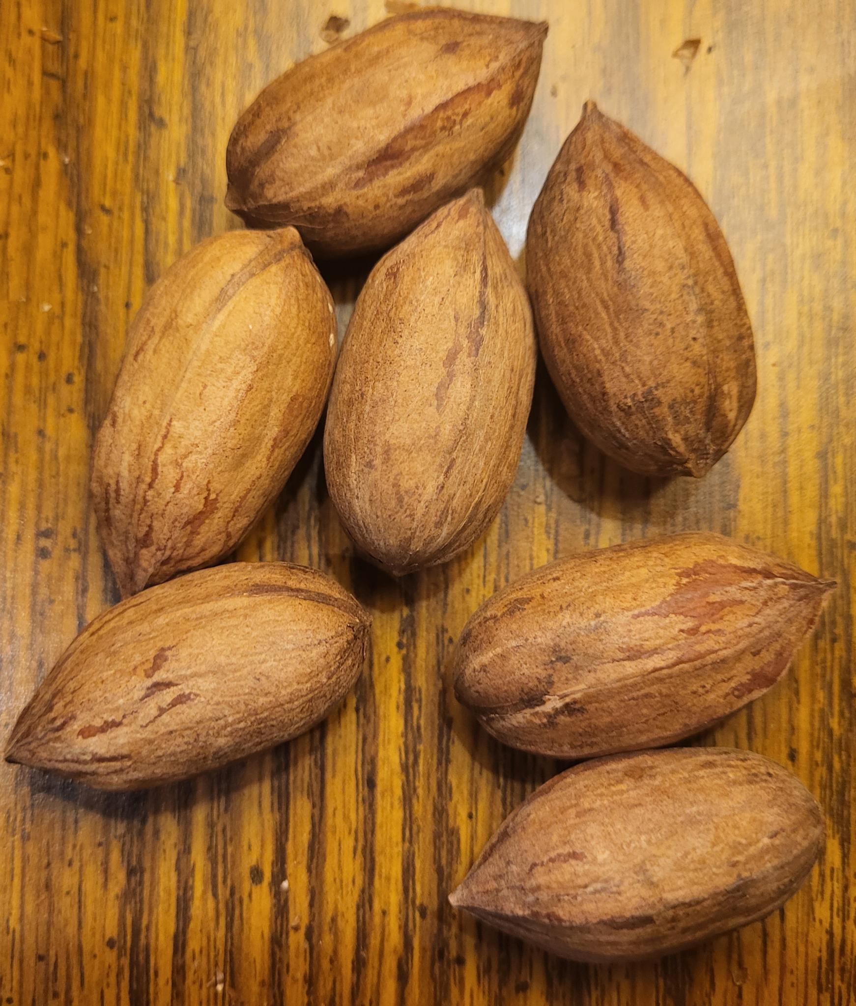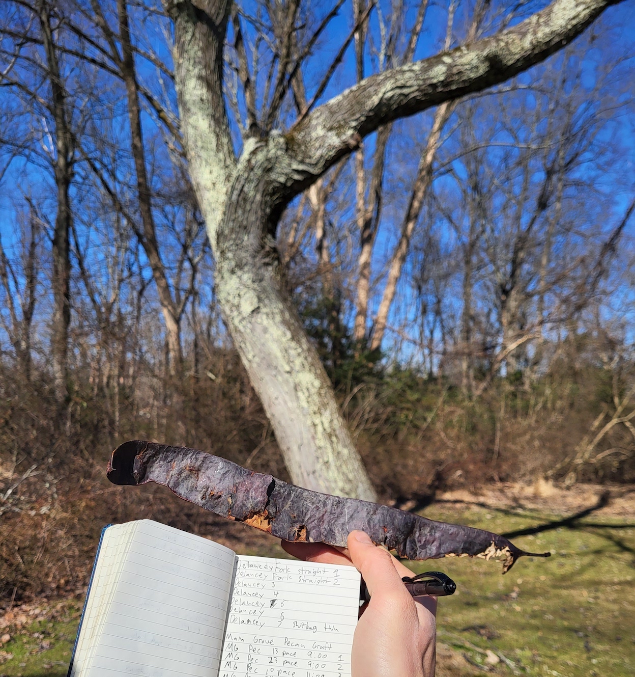 - "Abby" - BitxPec. Abbott seedling. 60% kernel, 2.3g-2.8g kernel, oat-like flavor underneath mild astringency; not pleasant to eat. Stems, nuts, and catkins withstood moderate frost during pollen shed in 2024 that caused dieback on the other hickories nearby. 50% easy extraction, 80% halves, 70% quarters, 30% pieces. Fills reliably and low weevil predation. A Jesse Markson and Eric Cornel selection. Pollen fertile.
