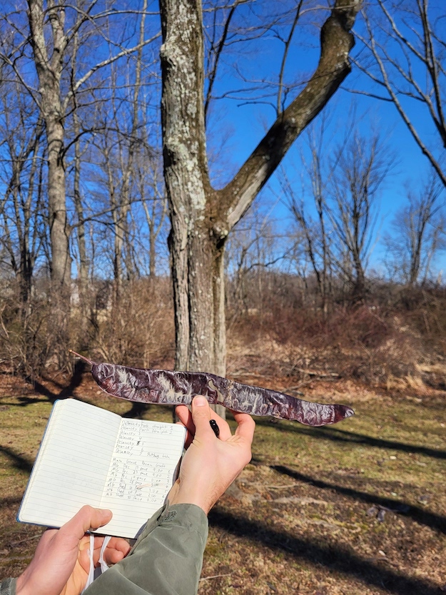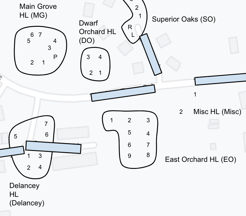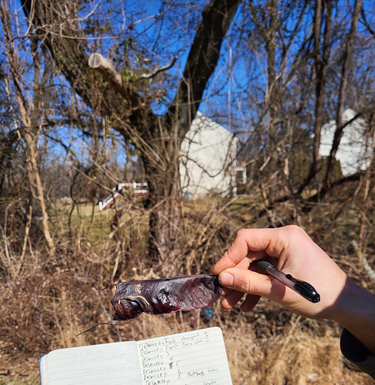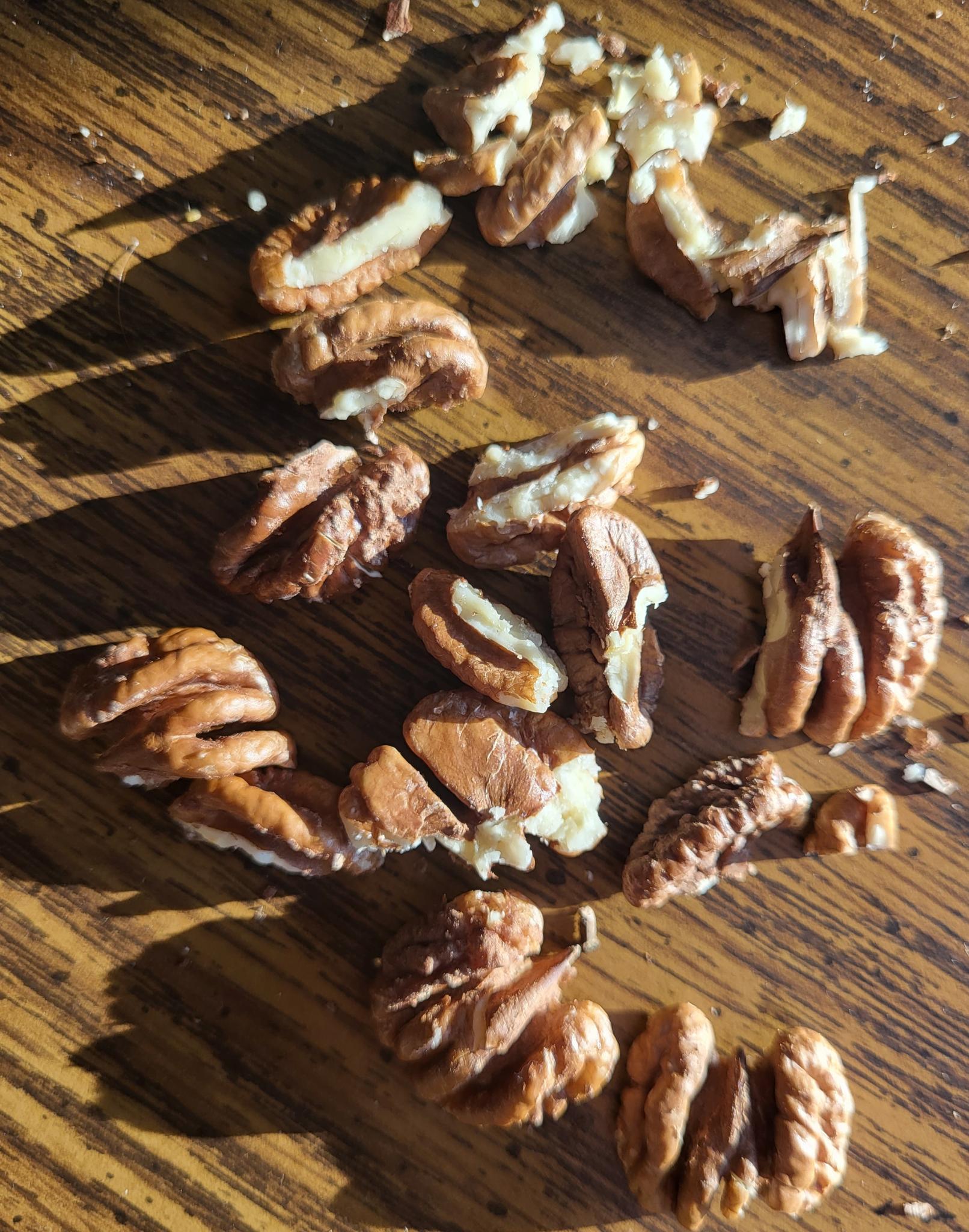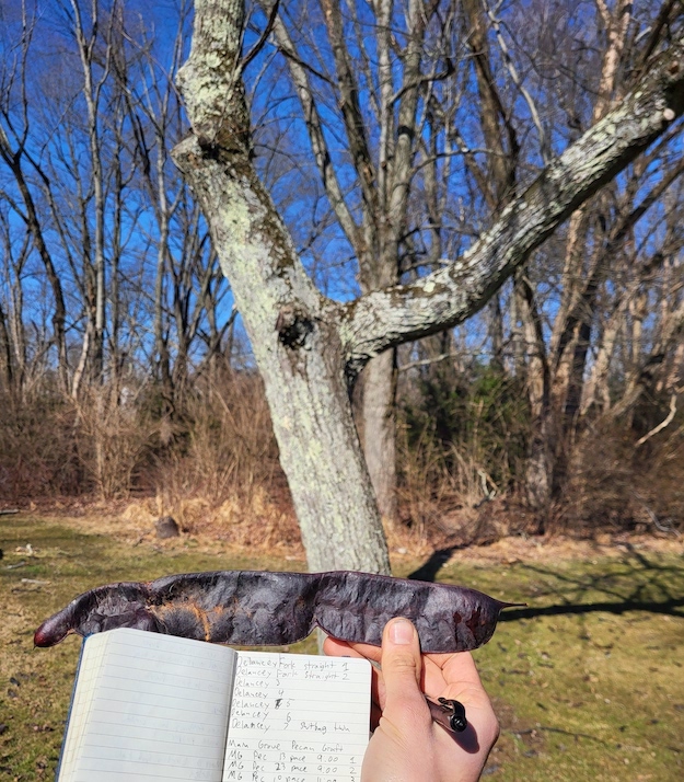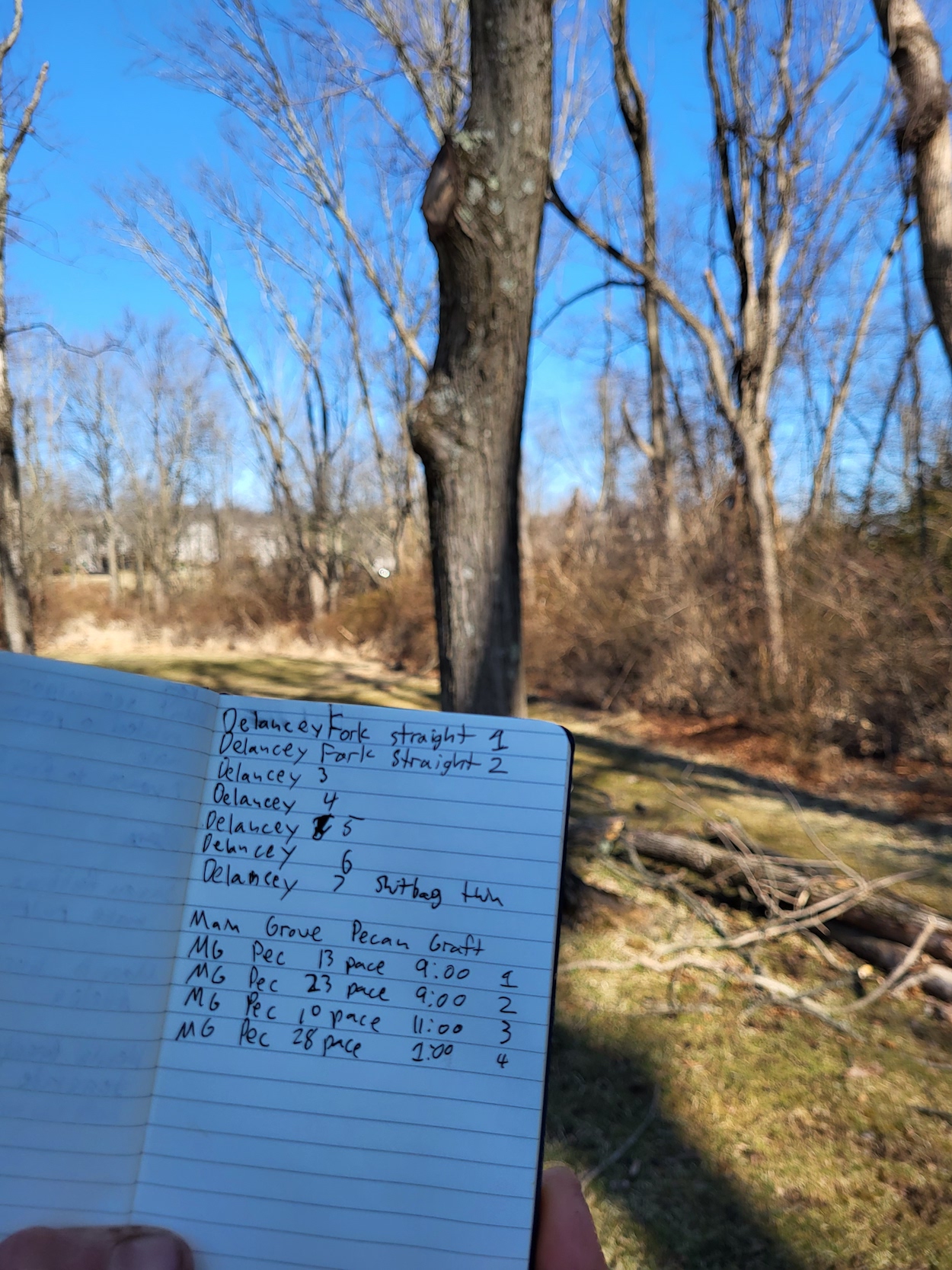 - "Abby" - BitxPec. Abbott seedling. 60% kernel, 2.3g-2.8g kernel, oat-like flavor underneath mild astringency; not pleasant to eat. Stems, nuts, and catkins withstood moderate frost during pollen shed in 2024 that caused dieback on the other hickories nearby. 50% easy extraction, 80% halves, 70% quarters, 30% pieces. Fills reliably and low weevil predation. A Jesse Markson and Eric Cornel selection. Pollen fertile.