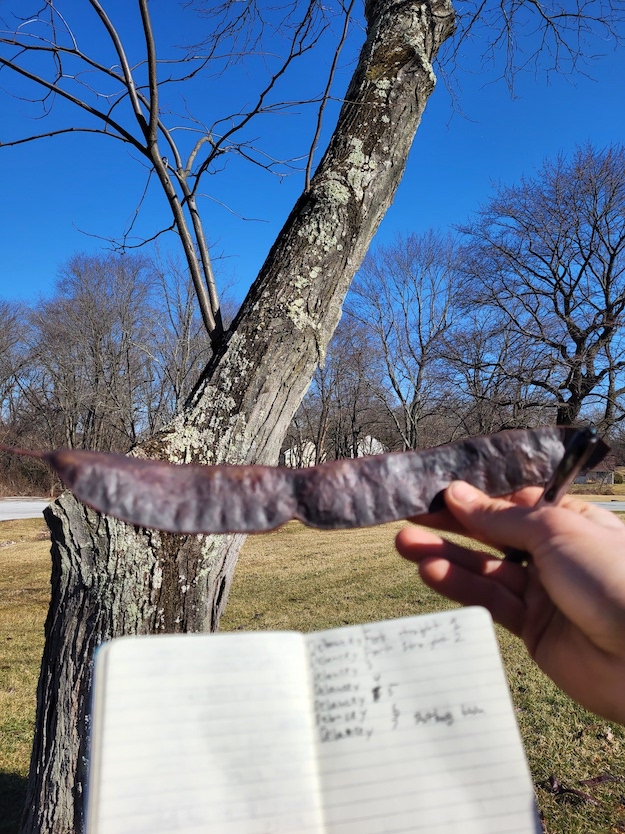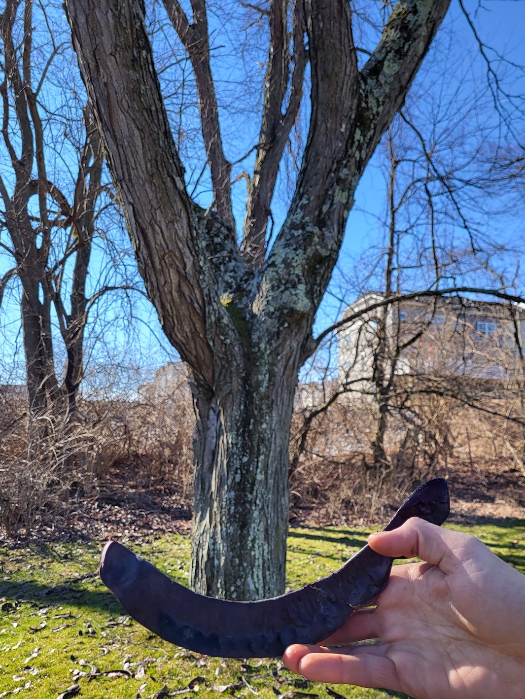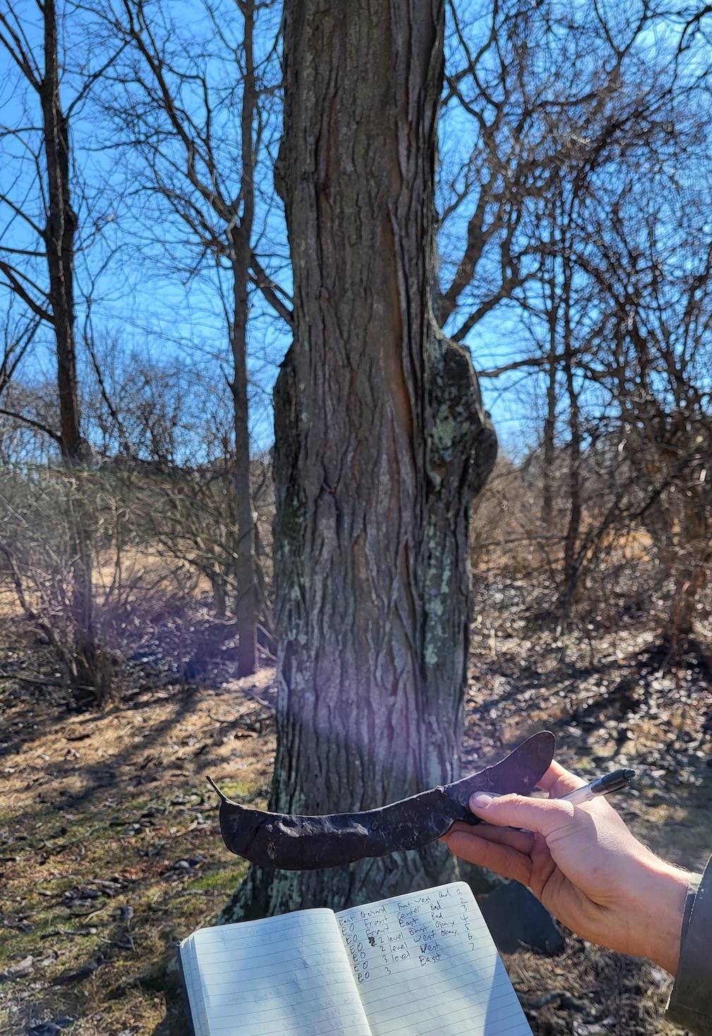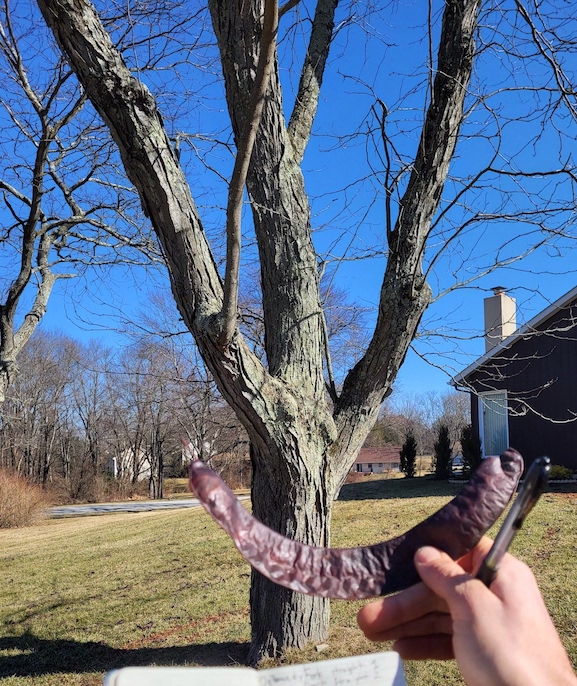 - "Long False Siers" - GlabraxShagxBit, possibly ShagxOvalisxBit. 50% kernel, 3.3-3.8g kernel, no astringency, productivity not well observed, shagbark aroma, mild black walnut flavor, late. Good extraction. 80% easy extraction, 100% finger extraction. 25% halves, 70% quarters, 5% pieces. Crack head to heel. Doesn"t always fill completely in St Croix Co in short cool years but fills to at least a 3g at 48% kernel. Low shag, somewhat tight bark with narrow plates, long narrow, pointy bud, thin wigged husk, 5 & 7 leaflets, wide leaflets, central leader form in a forest, form unknown in orchards. A seedling of False Siers. Pollen fertile. Quality breeding tree. -36F. St Croix Co WI