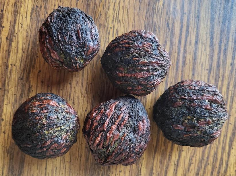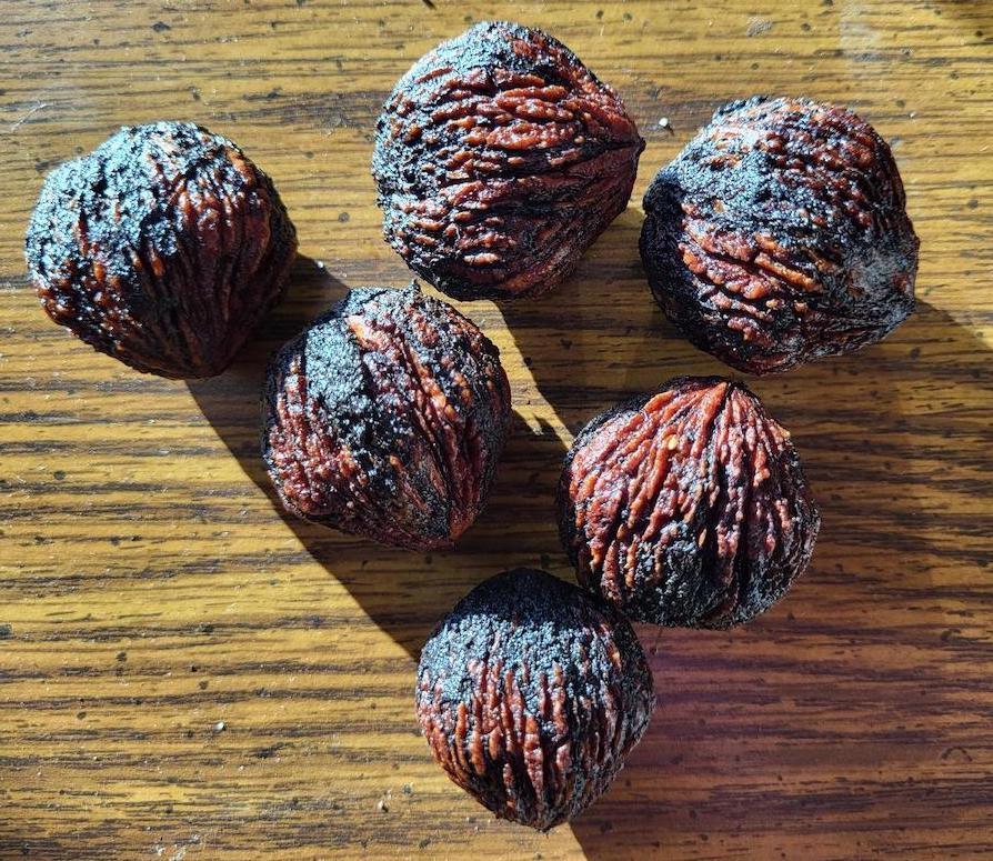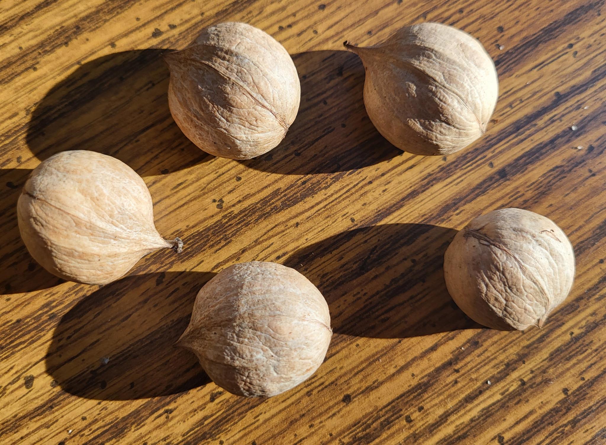 - "Fairbanks" - BitxShag. Tested in St Croix Co, WI. 45-50% kernel, 2.0-3.0g kernel, annual heavy bearing, unripened off flavor in zone 4a. 95% easy extraction. 60% halves, 35% quarters, 5% pieces. Presses well but the poor flavor transfers to the oil. Crack any way youd like. Ripens late with shrunken kernel in St Croix Co, WI - Oct 15th; data is from St Croix Co evaluations, expect 2.6-3.1g kernel, 50% kernel, and dark kernel color in Southern WI. Partially self hulling but not completely. Low weevil predation in WI, possibly due to late ripening. Lightly shaggy bark, mostly bit bud, bitshag husk with minor wings and intermediate husk thickness, 7-11 leaflets, narrow leaflets, wide horizontal branching pinate form. Doesn"t store well at least when unfilled from St Croix Co, WI. Highly variable nut size from year to year depending on fertility and moisture. Kernel fill can be variable too. Consistent nut size from branch to branch. Many issues with weevil, predation, and poor fill when in weeviled areas but not in the north where it doesn"t fully ripen. Weevils appear to cause kernel fill issues. -36F hardy. St Croix Co WI