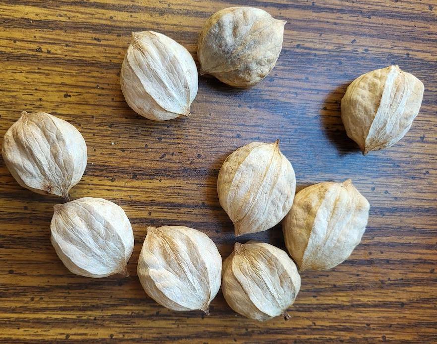 - "Stratford" - BitxShag. 50%, 1.5-2g. Annual heavy bearing a bit less than fairbanks reported, very minor astringency reported. Shag bud, bitshag bark, bitshag husk, white smooth shell, 5 leaflets. Cracks about as well as Fairbanks reportedly. Scion from PA.