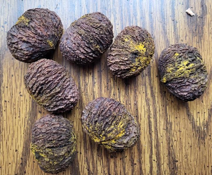 - "Siers" - 47% kernel, 2.7g kernel typical. Nut size and % consistent. Lots of underdeveloped kernels and weevil affected nuts. This could be due to poor polination and low past harvests. Rich bitshag flavor with low astringency; not worth eating. 50% easy extraction, 70% finger extraction, 10% halves, 65% quarters, 25% pieces. Pollen fertile.
